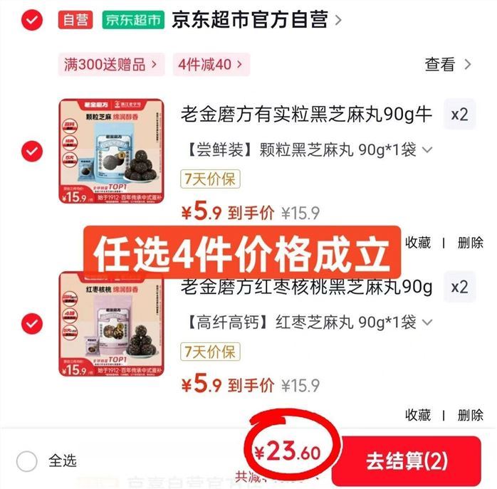 老金磨方黑芝麻丸90g任选4件23.6元包U 5.9/袋