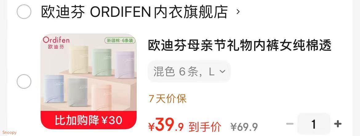 欧迪芬母亲节礼物内裤女纯棉三角短混色6条 39.9元