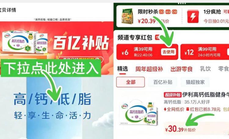 快1.3/盒纯牛奶 250ml的 付30.3-送1元虹包 29.3元