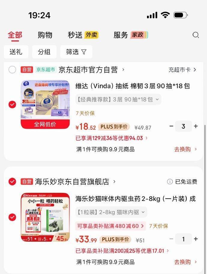维达Vinda抽纸 棉韧3层90抽*18包M码 拍3件 每件18.52元