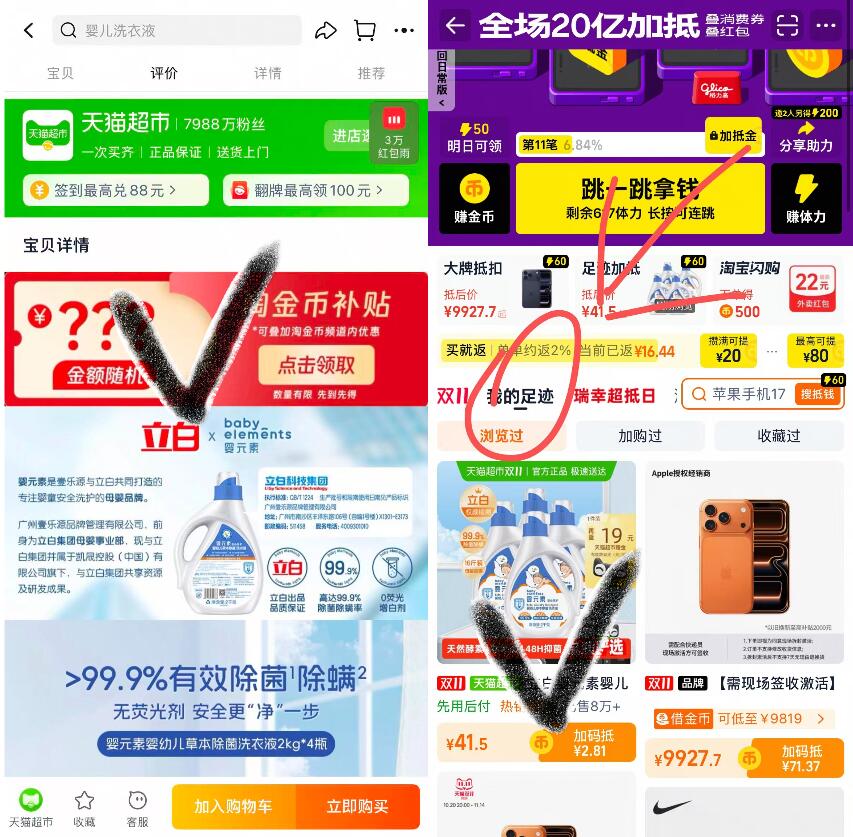 1婴元素婴儿洗衣液2L*419.5 88付38.5 送19卡 到手19.5元 叠楼上3品牌金+淘金币才对