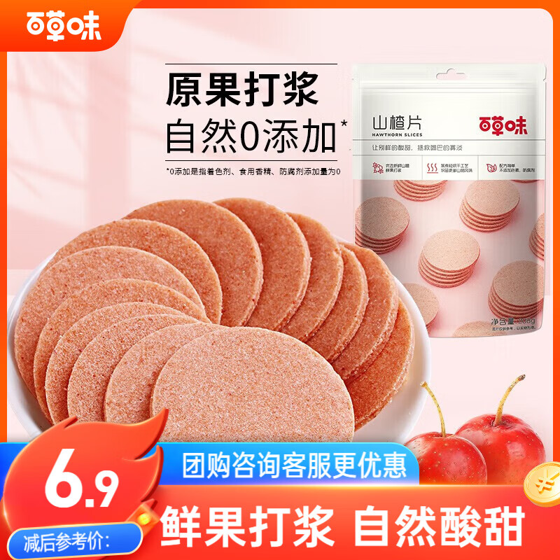百草味京东自营旗舰店:百草味山楂片208g/袋 山楂果脯蜜饯零食休闲果干零食小吃烘焙 5.80元