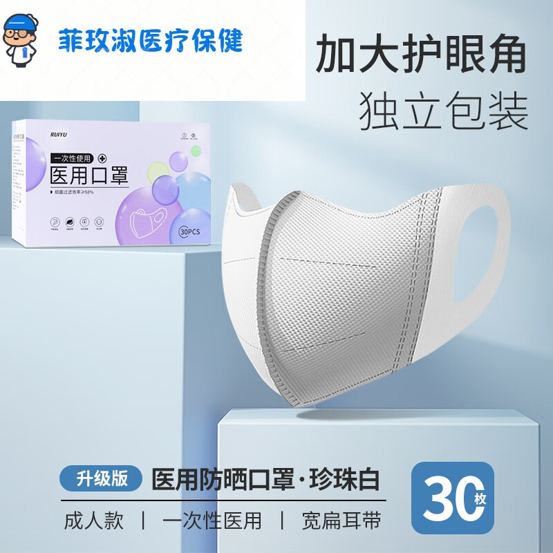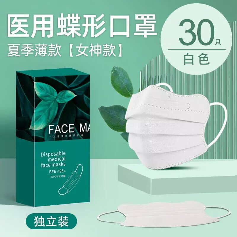 一次性防晒口罩防紫外线女高颜值护眼角医用外科薄立体7 高颜值蝶形白[医用外科]30只独