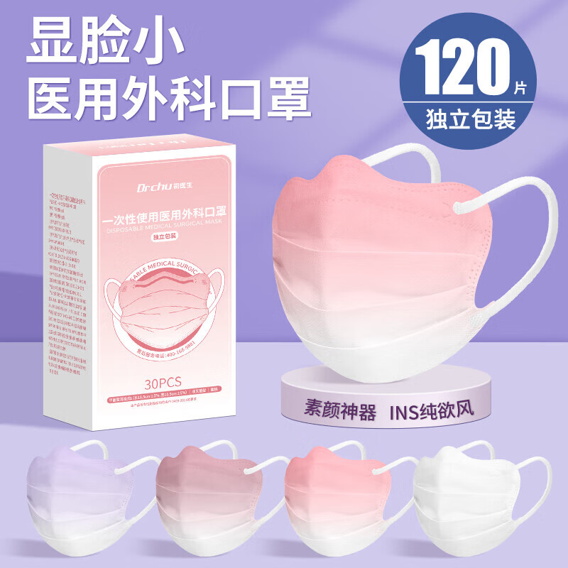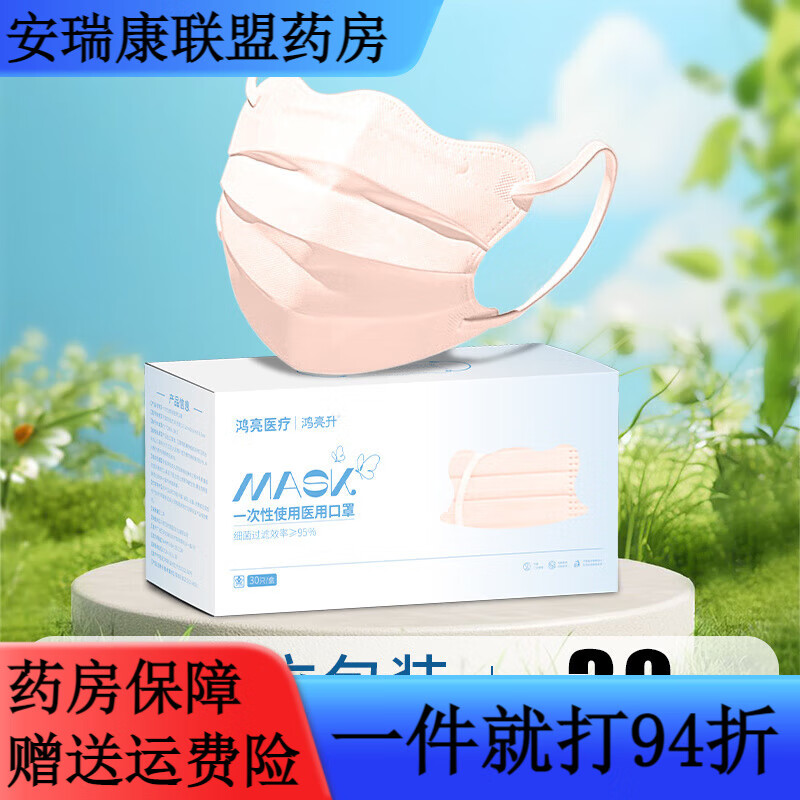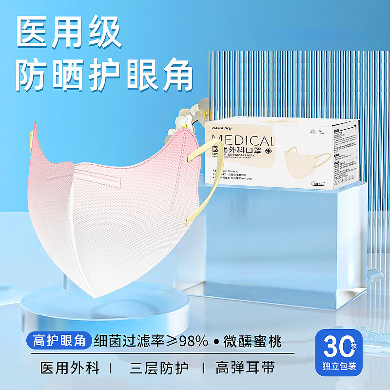 通用蝶形口罩医用口罩女高颜值护眼角显脸小薄款一次性三层防晒独立装 【蜜桃粉】-防晒/透气/不花妆 医用口罩【30只盒装】全新升级丨护眼角显V脸