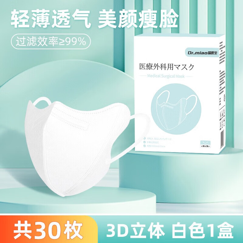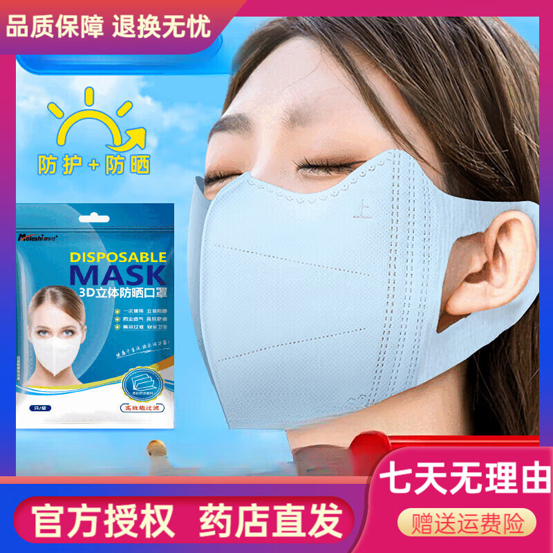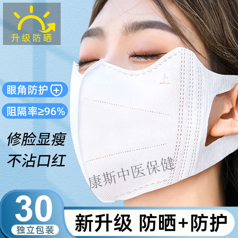袋鼠医生防晒口罩一次性3D立体高颜值UPF100+防紫外线女面罩独立包装30只