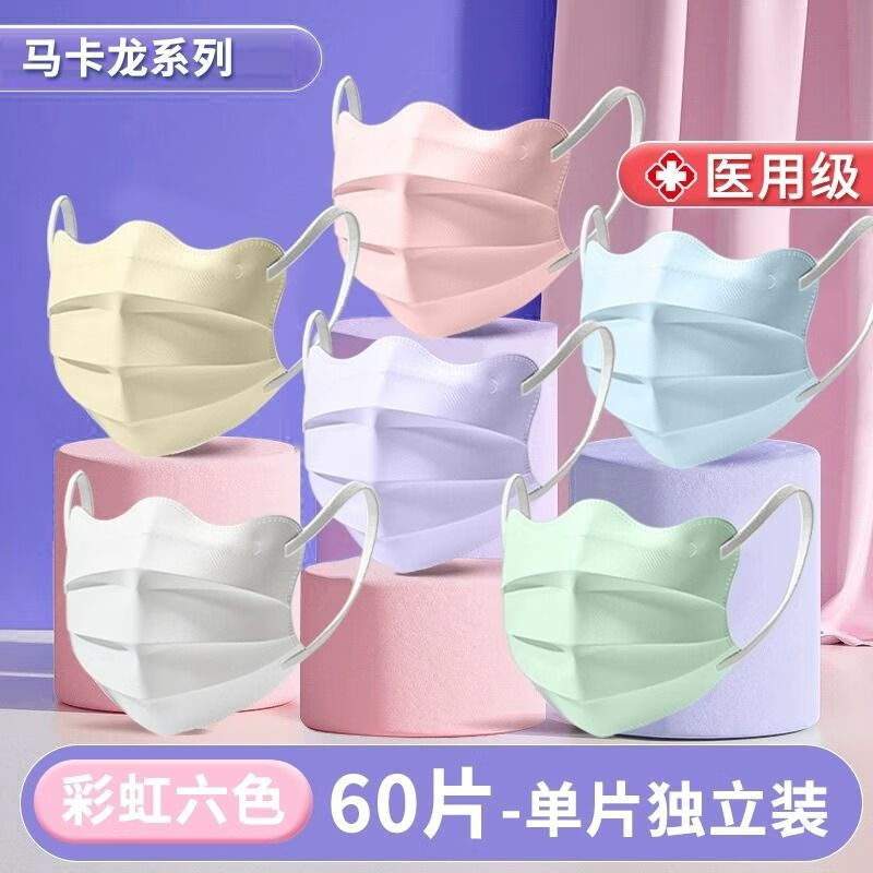 蝶形口罩医用口罩外科一次性蝴蝶形女高颜值护眼角显脸小独立包装 店长推荐[彩虹六色]-透气不花妆 医用外科[30只]升级加大丨防晒