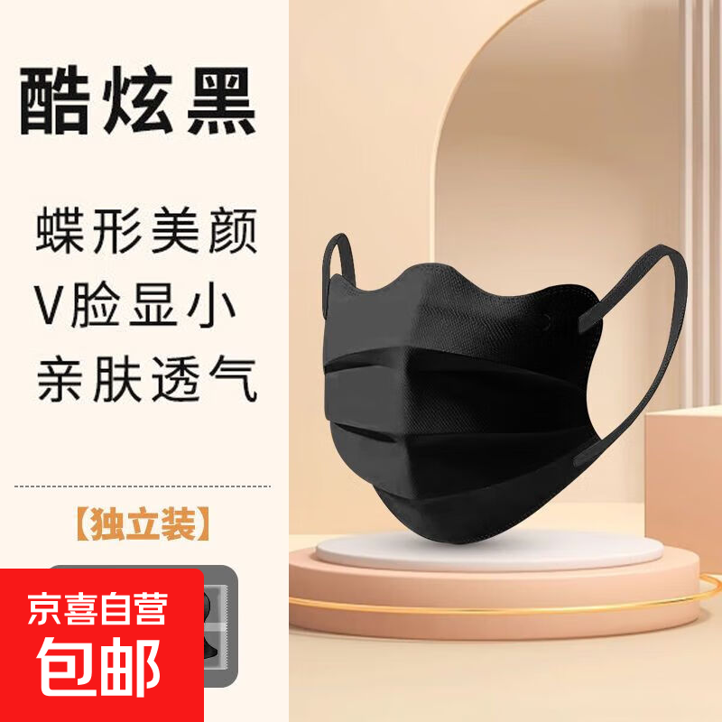 蝶形口罩女高颜值2025新款防晒尘薄款口罩白色一次性护眼角显脸小 V型/显脸小【炫酷黑】 10只【独立包装】