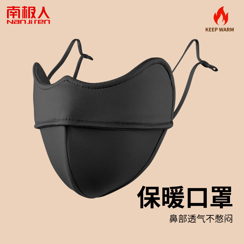 南极人口罩保暖冬季女高颜值立口罩户外骑行骑车防风防寒透气口罩男 黑色