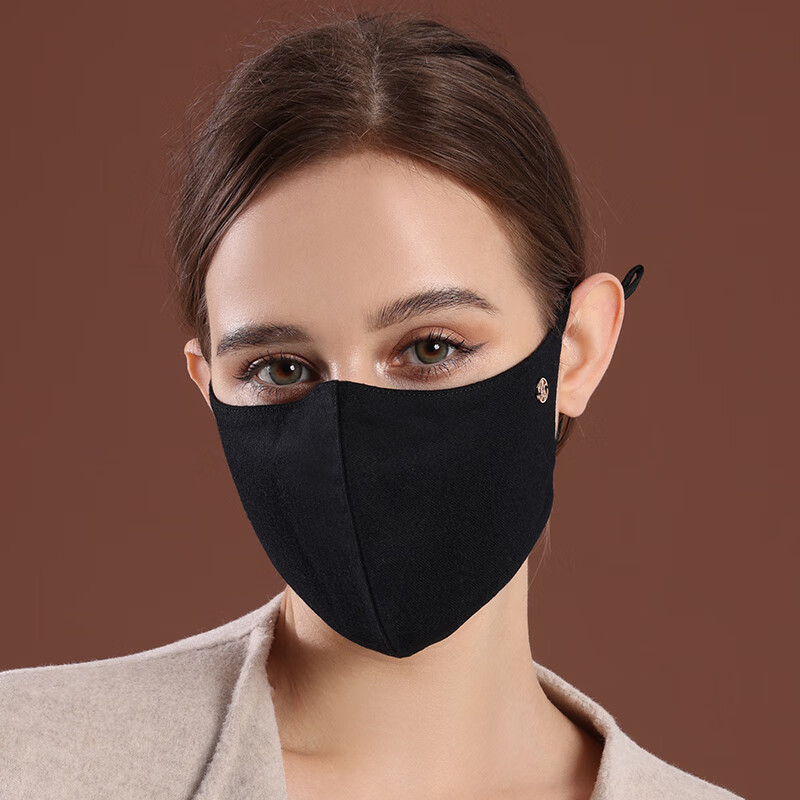 爱丝玉爱丝玉羊毛口罩女高颜值新款冬天防风防寒骑行款保暖冬季立体黑色 星际黑