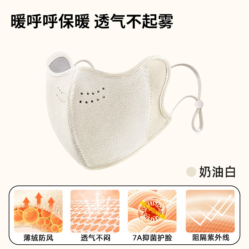通用冬天口罩女高颜值 东北骑行口罩秋冬季保暖冬天旅行防风防寒面罩 抗风防寒【奶油白】单件装