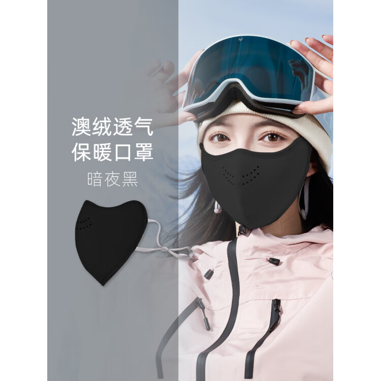 森仪(SEORNYIRE)保暖口罩女高颜值秋冬季骑行防寒风透气防晒东北滑雪旅游男款 防风暖冬不闷澳绒暗夜黑 均码