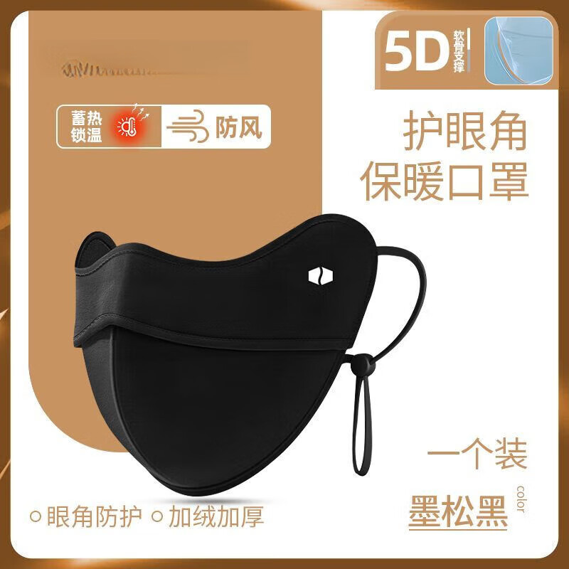 三栖虎口罩女高颜值秋冬季2025新款骑行保暖冬季防风防寒3D立体软骨支撑 1个装【墨松黑】防风抗寒保暖 【软骨支撑 立体修容】护眼角保暖口罩