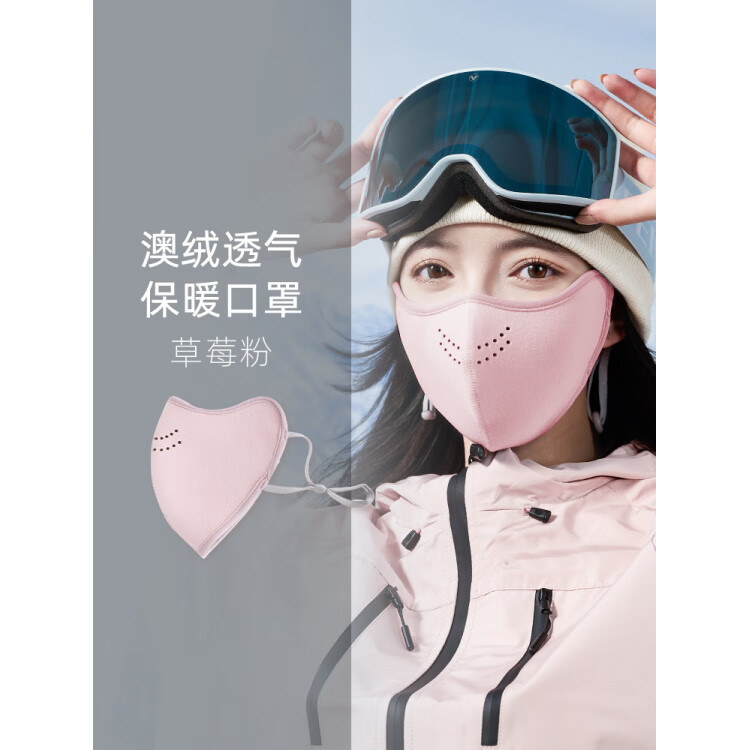 森仪(SEORNYIRE)防晒面罩秋冬季保暖口罩防风防寒女高颜值新款男 御寒防风_暖冬不闷澳绒草莓粉