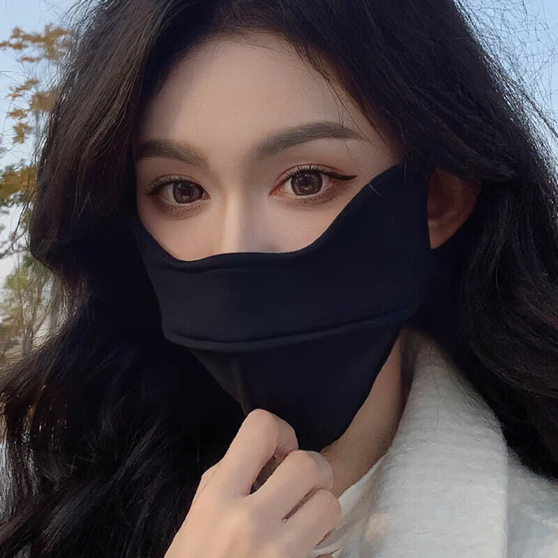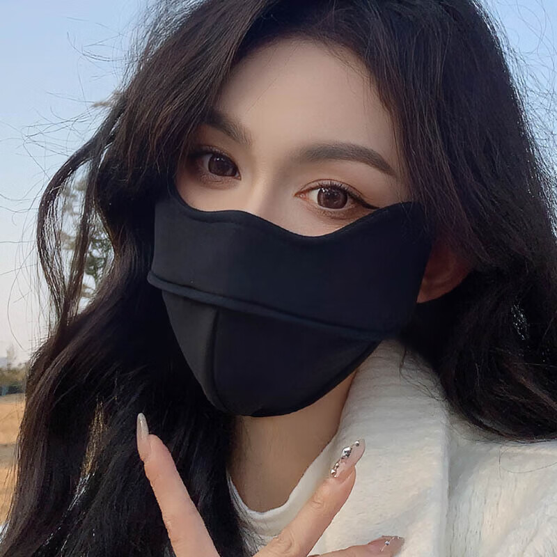 凝彬云羔绒保暖口罩冬天防风防寒女高颜值秋冬季防冻脸加绒厚 [透气款]暗夜黑防风保暖透气不闷