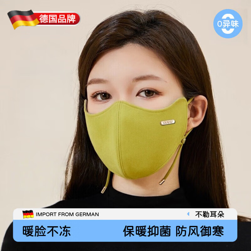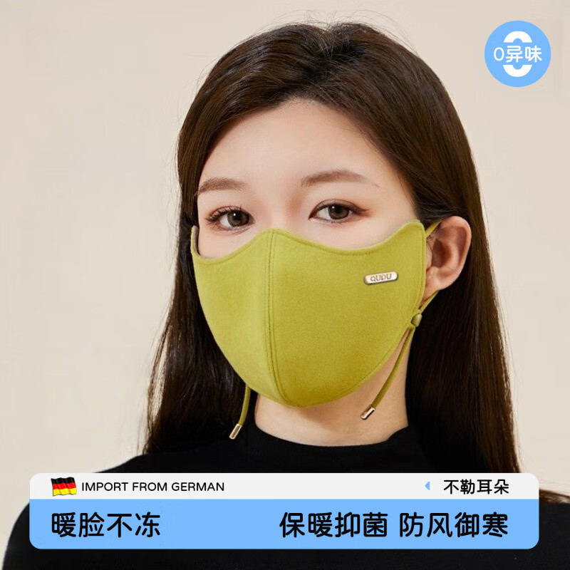 GERTHRON德国德绒保暖口罩冬天防风防寒女高颜值2025秋冬季男3d立体防冻脸 【牛油果绿】奥绒双面-保暖口罩