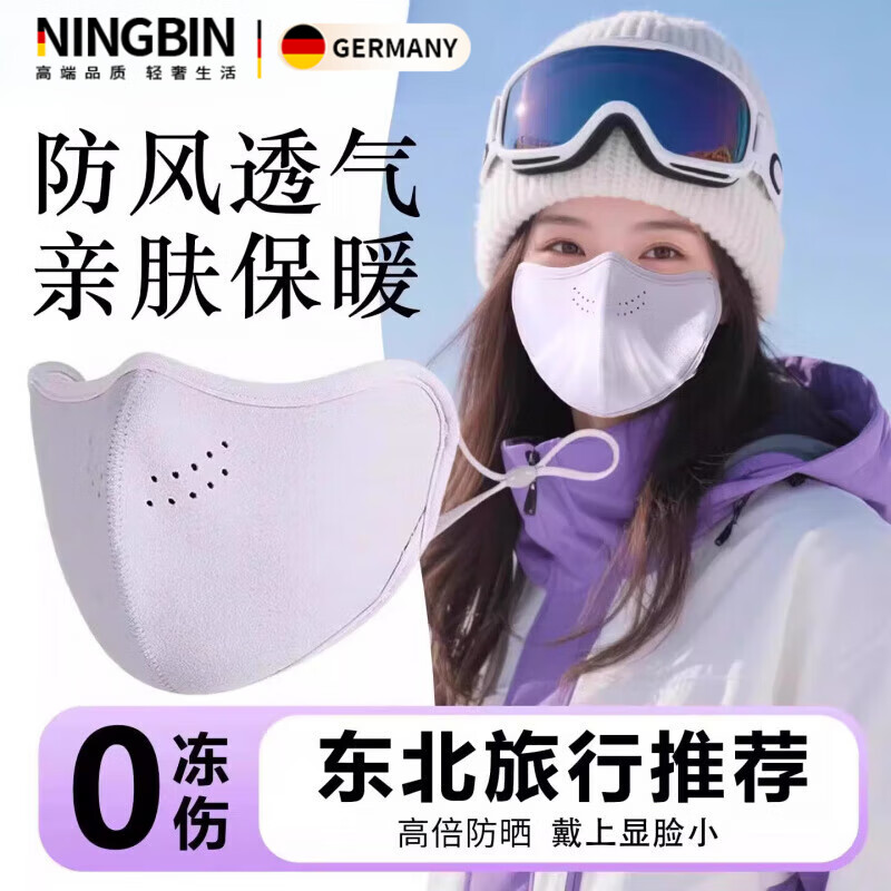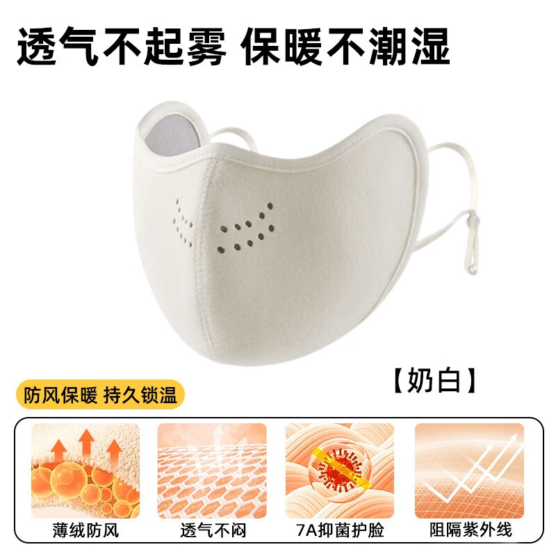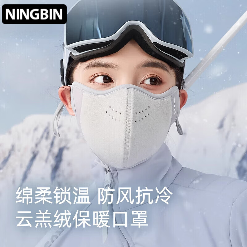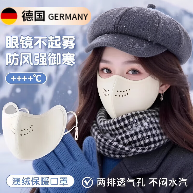 凝彬德国保暖口罩防风防寒2025新款女高颜值秋冬季面罩东北防冻脸防晒 奶白[保暖防风透气抗寒]