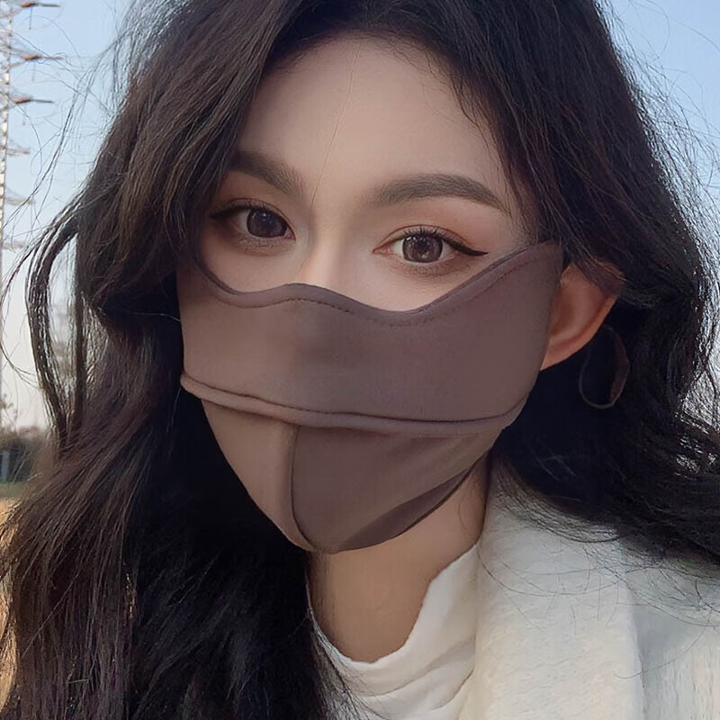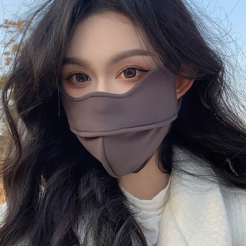 曼琪魅雅保暖口罩女高颜值秋冬季骑行防冻护脸3D立体加绒防寒面罩男士脸罩 保暖口罩-咖啡