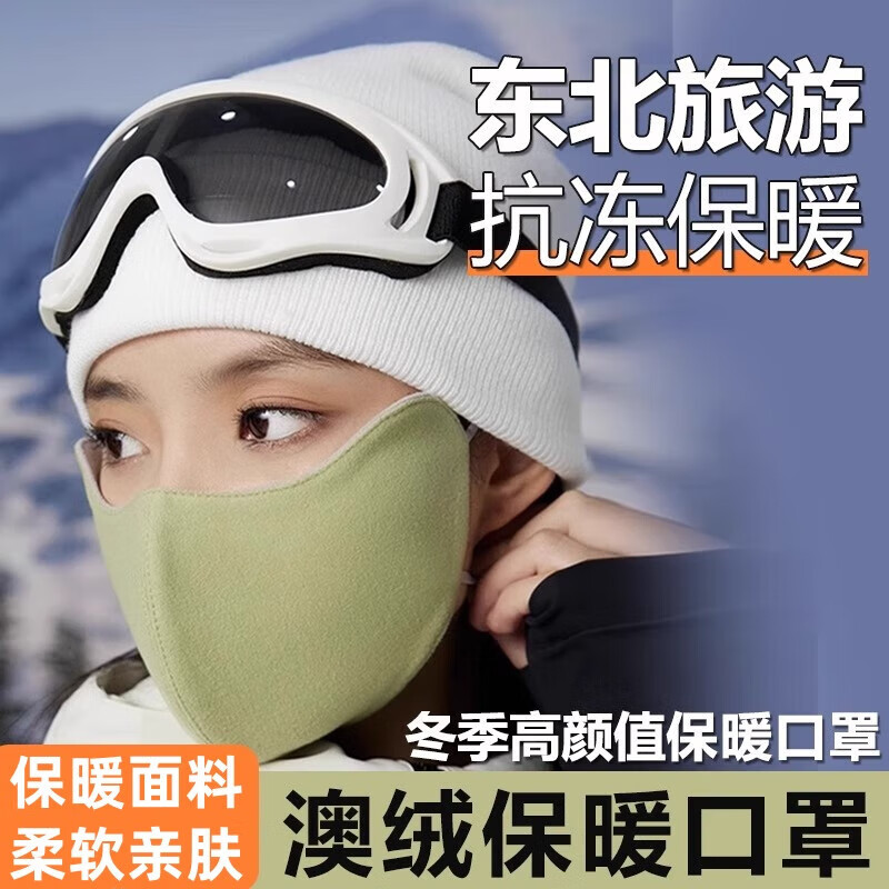 JCZS德绒保暖口罩冬天防风防寒女高颜值2025秋冬季男3d立体防冻脸 【牛油果绿】奥绒双面-保暖口罩