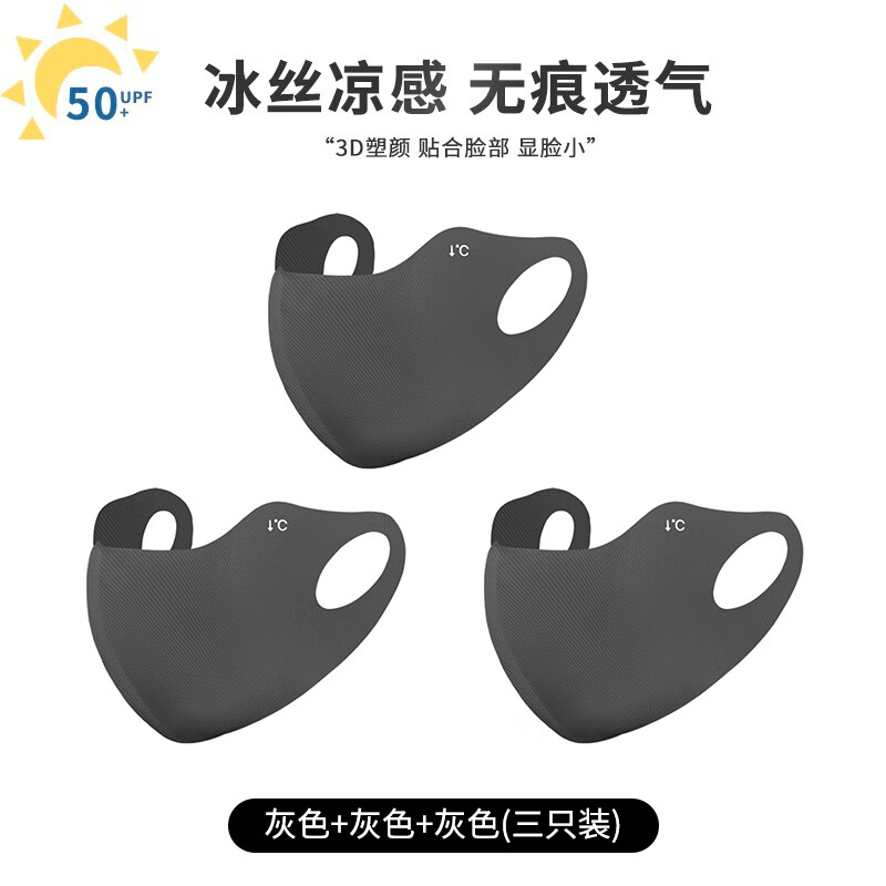 目丸显脸小防晒口罩女高颜值2025新款面罩秋冬护眼角脸罩冬天防风防寒 极简灰3只