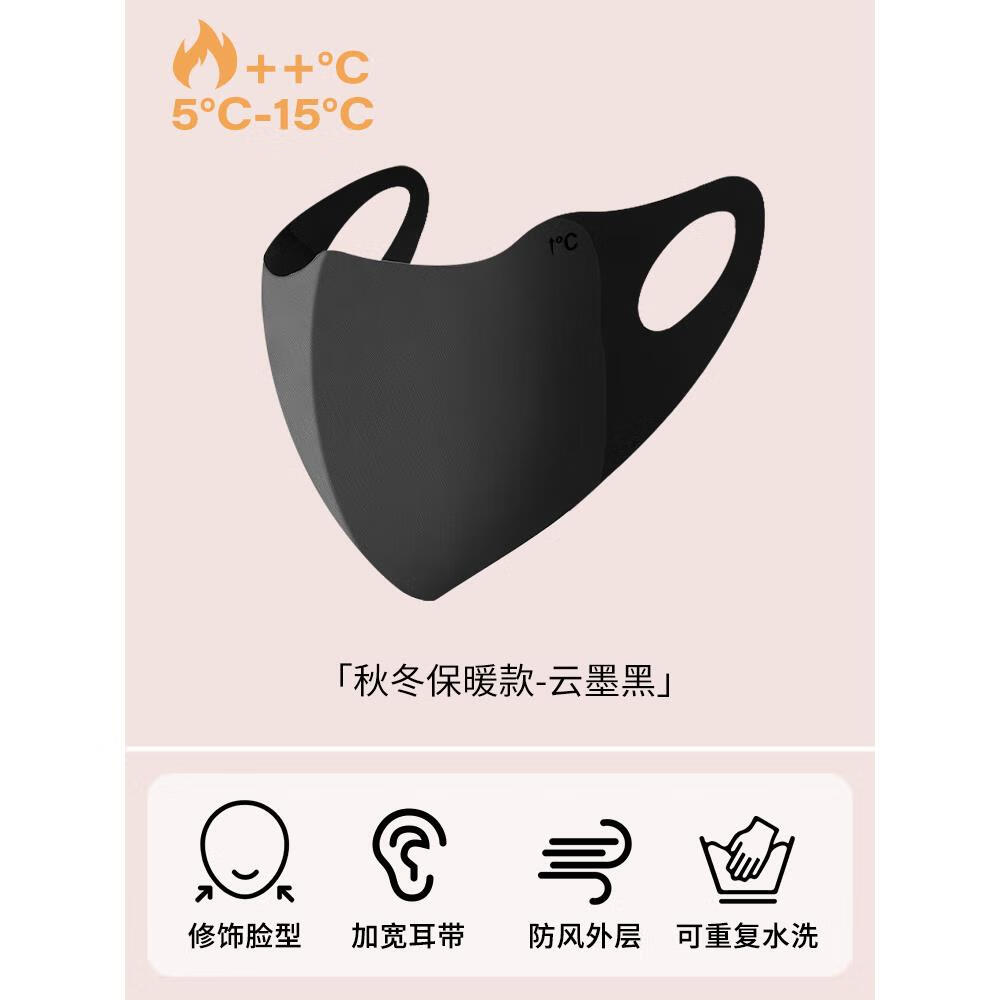 无牌德国保暖口罩秋冬季防风女高颜值2025新款透气冬天时尚3d立体面罩 秋冬保暖款云墨黑防风御寒 蓄热锁温透气不闷