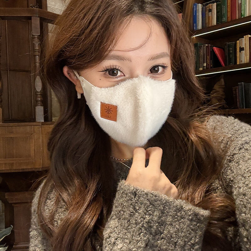 2025新款口罩秋冬季保暖2024澳绒口罩秋冬季女高颜值防风防寒冬天 澳绒奶白色丨双层加厚_绵软0压 均码