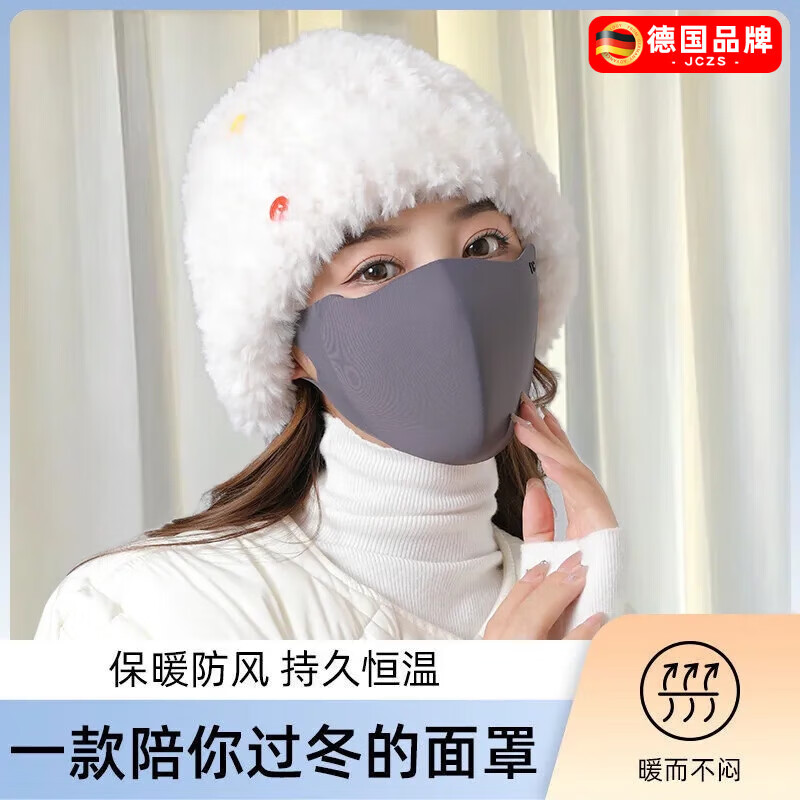 JCZS德国品牌保暖口罩冬天防风防寒女高颜值2025新款骑车护眼角防紫外 灰色【无痕保暖】 均码