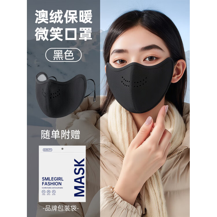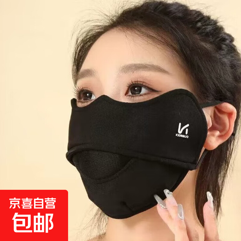 口罩冬天防风防寒2025新款高颜值女秋冬保暖面罩东北防冻脸紫外线 秋冬保暖口罩-黑色-德绒款-1个
