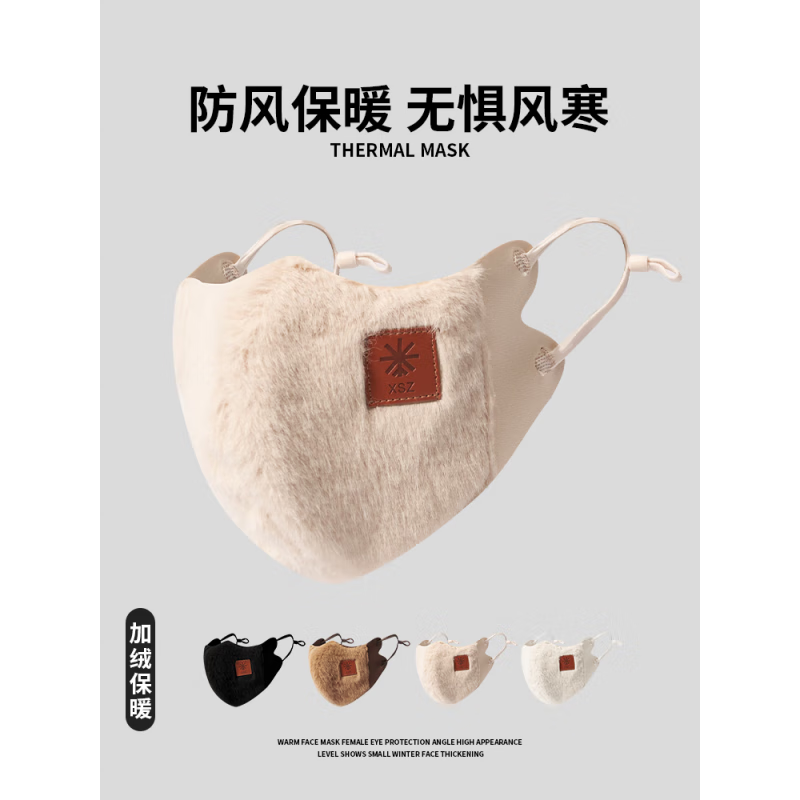 SOMUBAY毛绒保暖口罩冬天骑车防风防寒女高颜值可爱2025新款秋冬加绒面罩 米色 均码