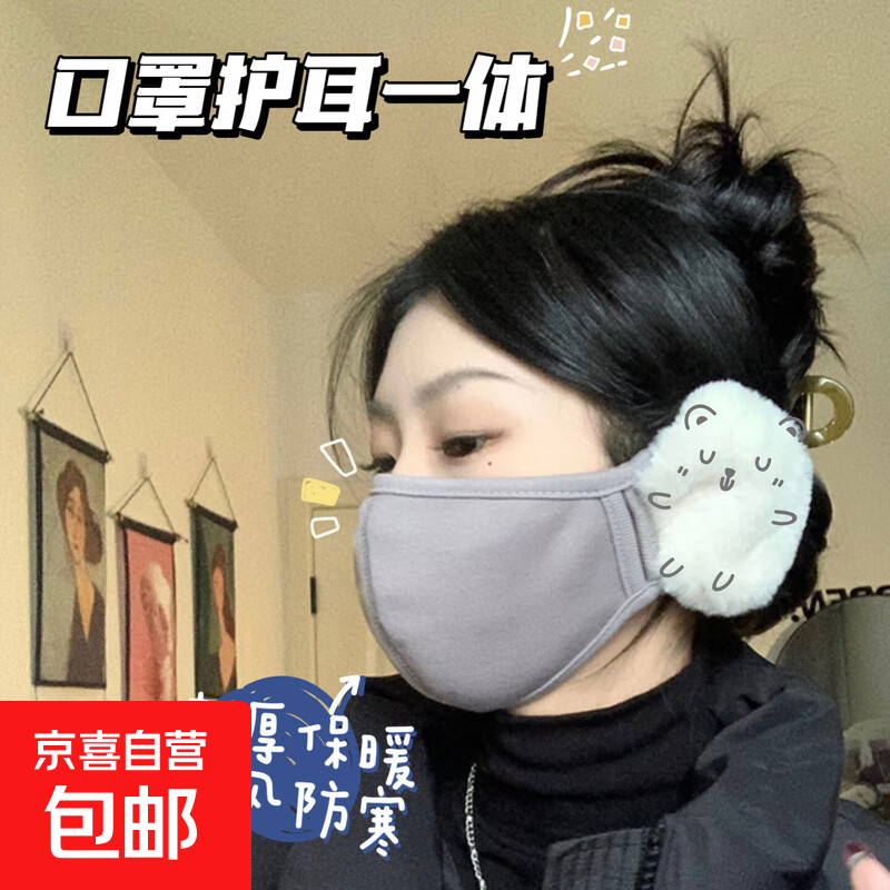 女士冬季口罩耳罩二合一骑车保暖神器高颜值耳暖防寒冬季耳罩 浅灰色