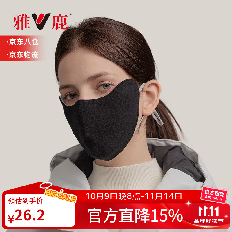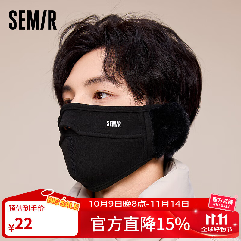 森马【开口二合一骑行面罩】口罩耳罩男女士秋冬季保暖耳套 黑色