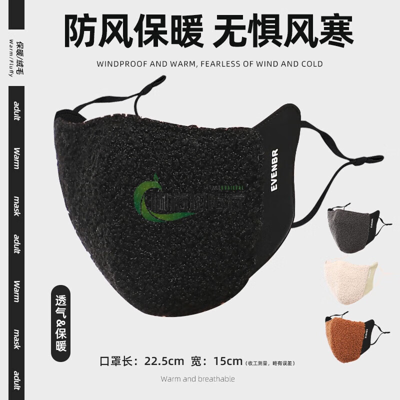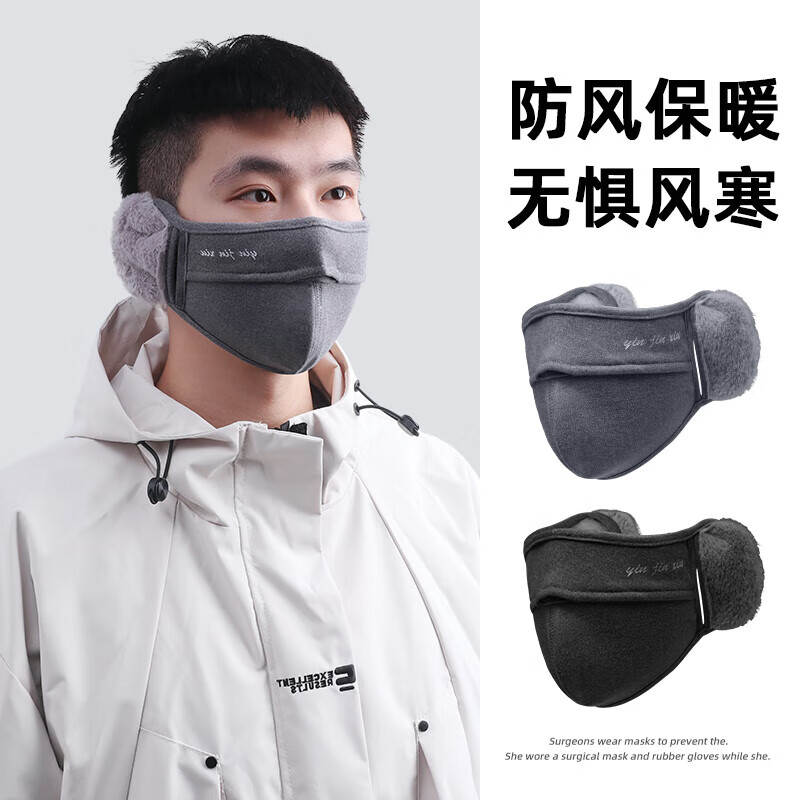 口罩冬天防风防寒加绒 加厚秋冬季女士高颜值保暖男士骑行挡风 绒 绒毛漫夜黑御寒锁温绵软0压