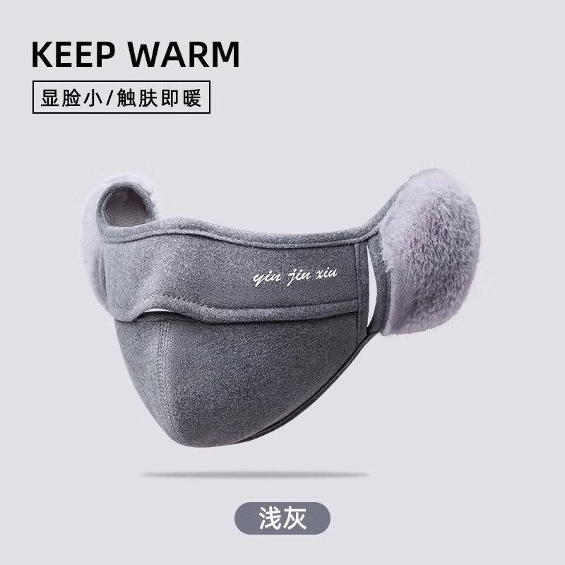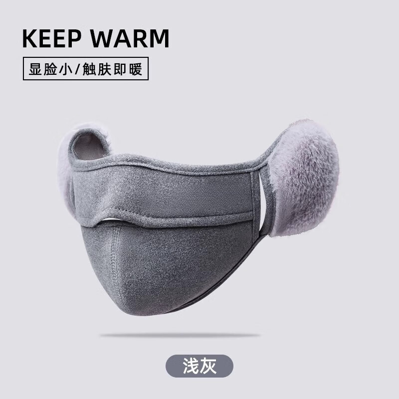 骑行遮脸面罩加厚护耳毛绒耳罩女 浅灰色【主图款