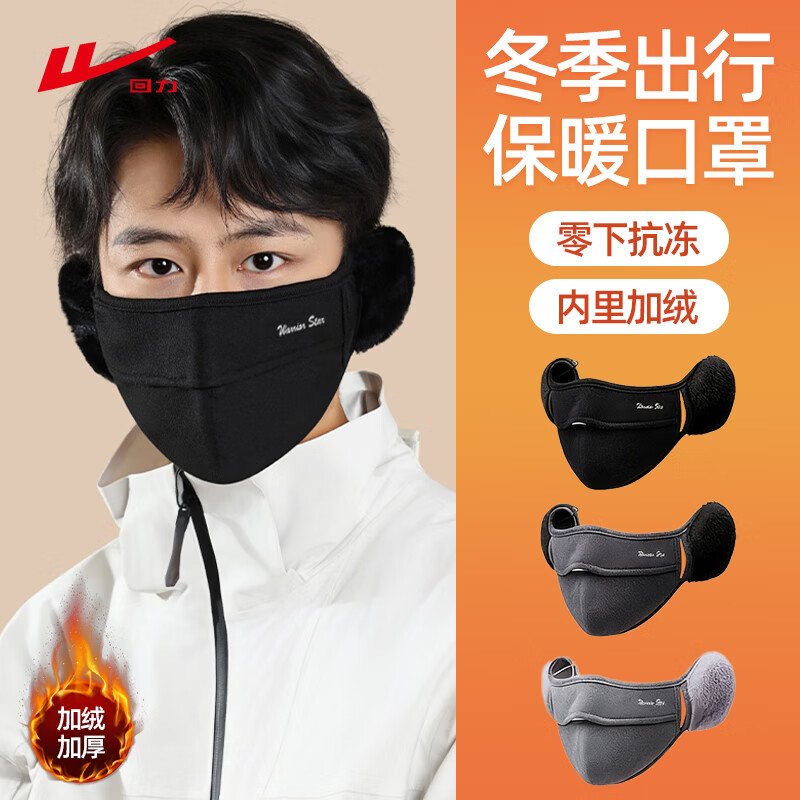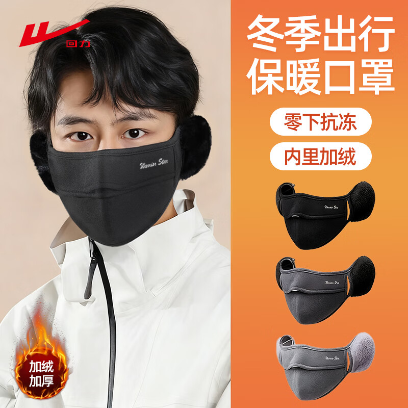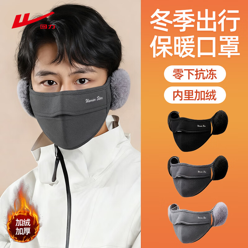 回力冬季保暖口罩男士高颜值户外防寒挡风骑行遮脸面罩加厚护耳毛绒女