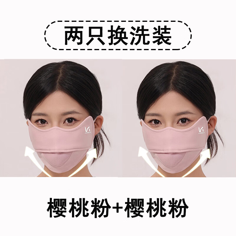 米囹口罩2025新款高颜值女秋冬保暖防风防寒骑行面罩冬3D立体显脸小 樱桃粉+樱桃粉 【防寒保暖男女同款】