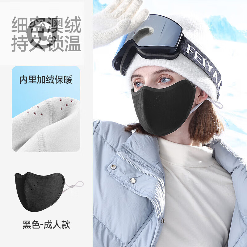 喆炜【品质五件装】2025新款澳绒保暖口罩女冬高颜值防风骑行防晒面罩 黑色【款奥绒口罩】5只装