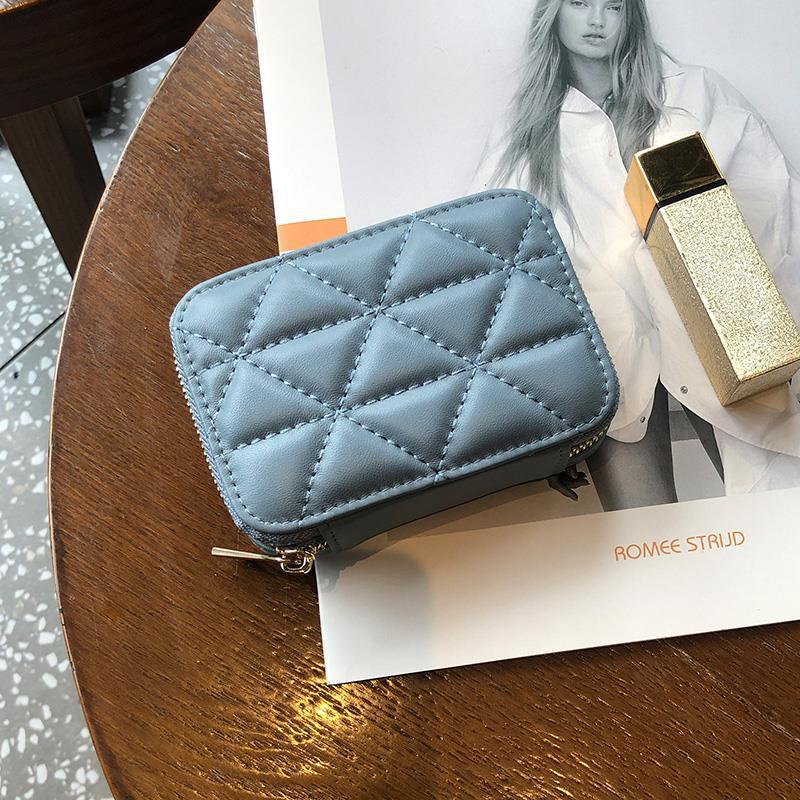 络伊得(LUOYIDE)口红包迷你镜子时尚随身便携可爱北欧ins收纳小包化妆包七夕 蓝色 羊皮