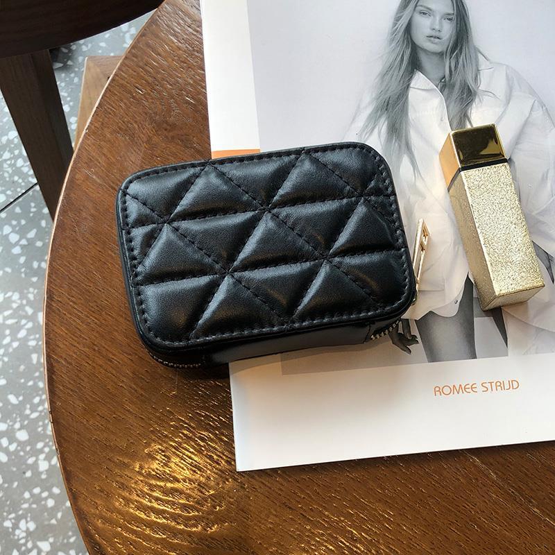 唧丘哇口红包迷你镜子时尚随身便携可爱北欧ins收纳小包化妆 黑色 羊皮