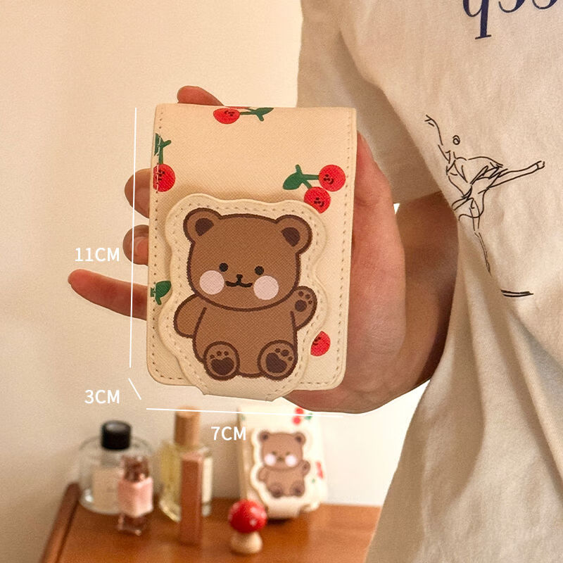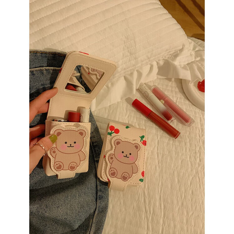昙蓓漫小熊口红包带镜子迷你小包少女随身便携旅行补妆化妆收纳包保 何佳功小熊口红包带镜子迷你小包少女随身便携旅行补妆
