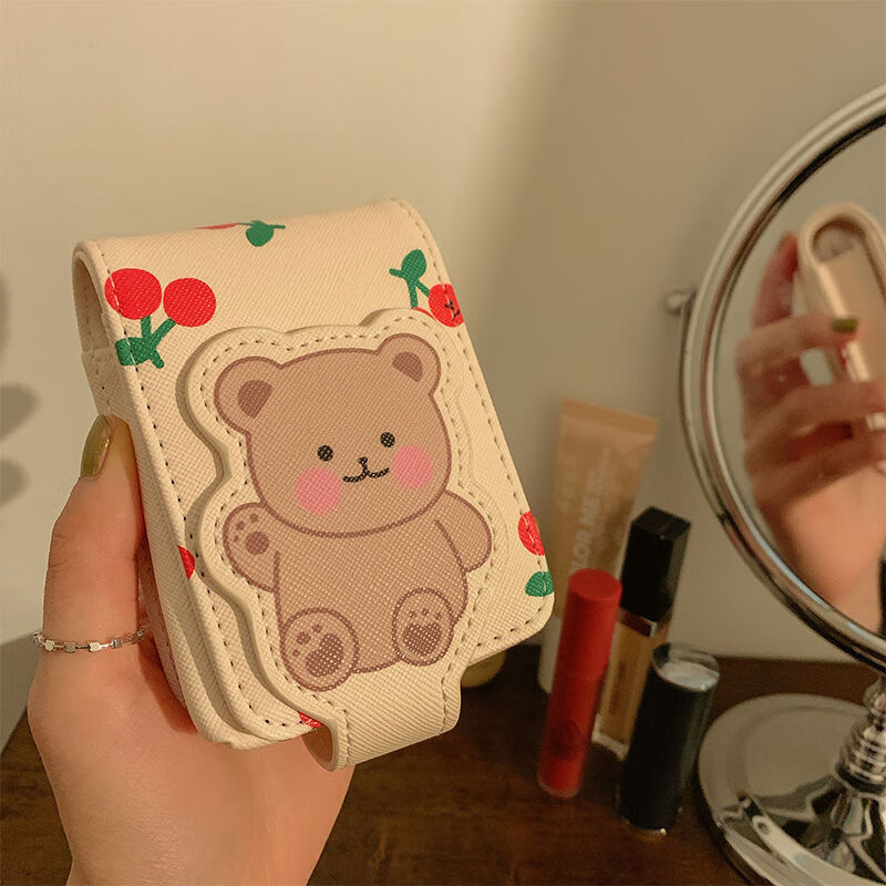 小熊口红包带镜子迷你小包少女随身可携式旅行补妆化妆收纳包保护 主图款