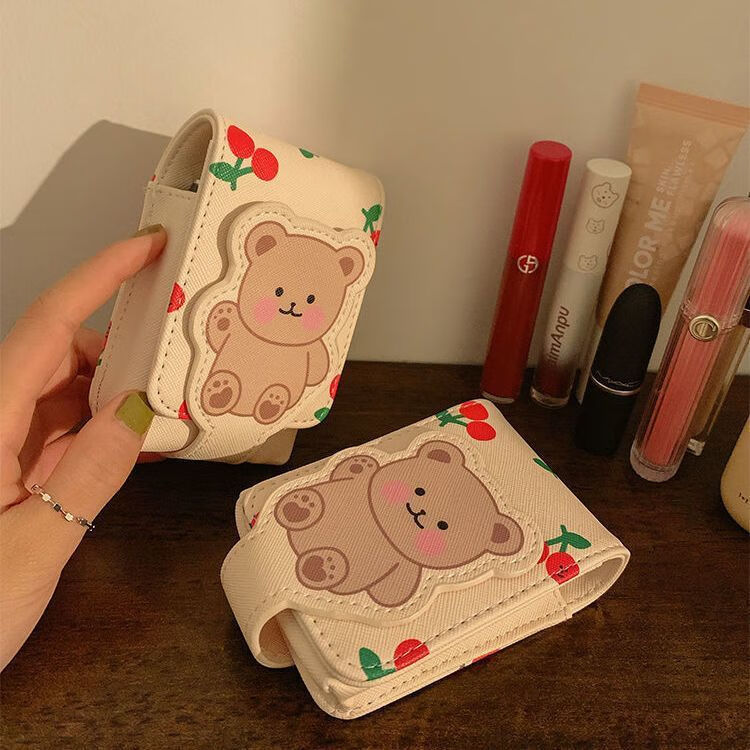 小熊口红包带镜子迷你小包少女随身便携旅行补妆化妆收纳包保护套 主图款