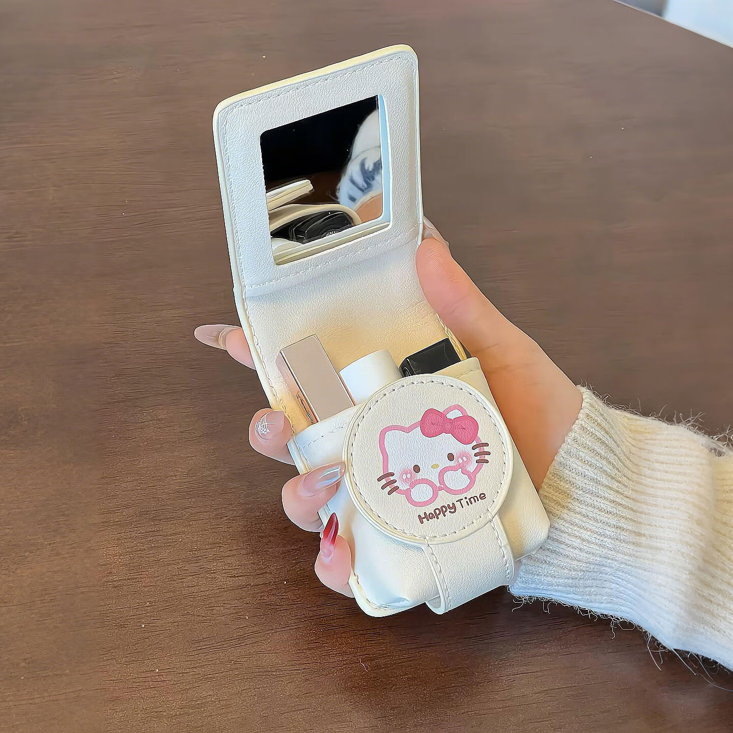 语森忆hellokitty口红包带镜子随身便携旅行补妆迷你小包轻便随身 HelloKitty镜子10×3×7点5cm