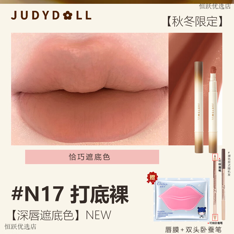 橘朵【秋冬裸色】橘朵唇粉霜气垫唇釉哑光口红唇霜哑不易红唇显白口红 3.0秋冬裸xC17+唇部膜+美诺双头