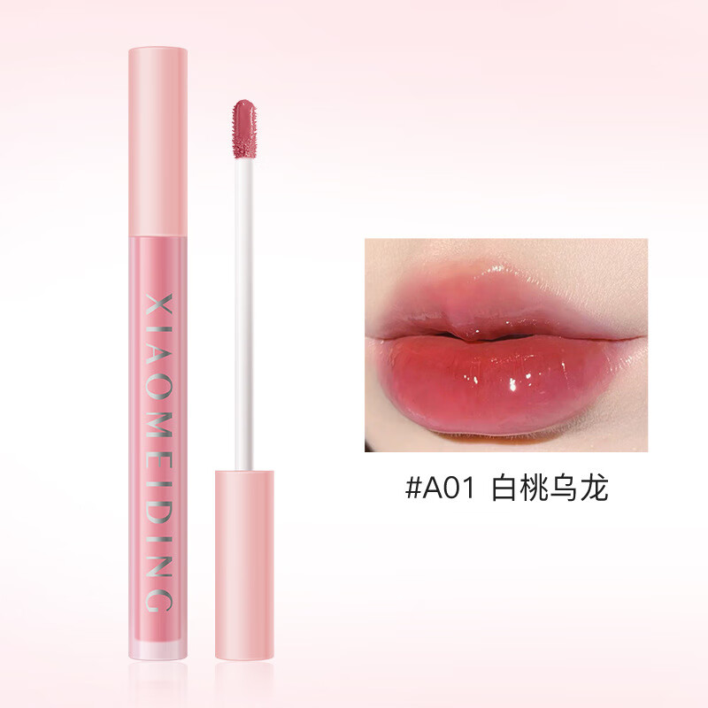 小美叮淡颜白开水蜜桃玻璃唇釉镜面水光唇釉显白纯欲学生党防水持妆口红 A01-白桃乌龙 一根装