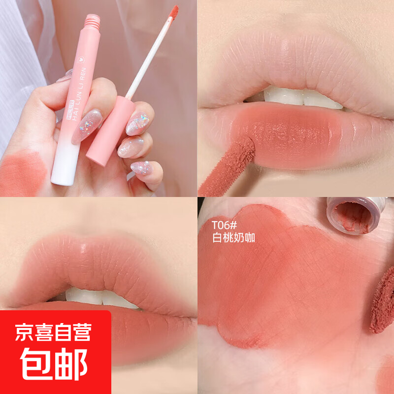 唇釉哑光雾面丝绒女不易沾杯唇泥裸色伪素颜少女防水持久裸装口红 T06-白桃奶咖
