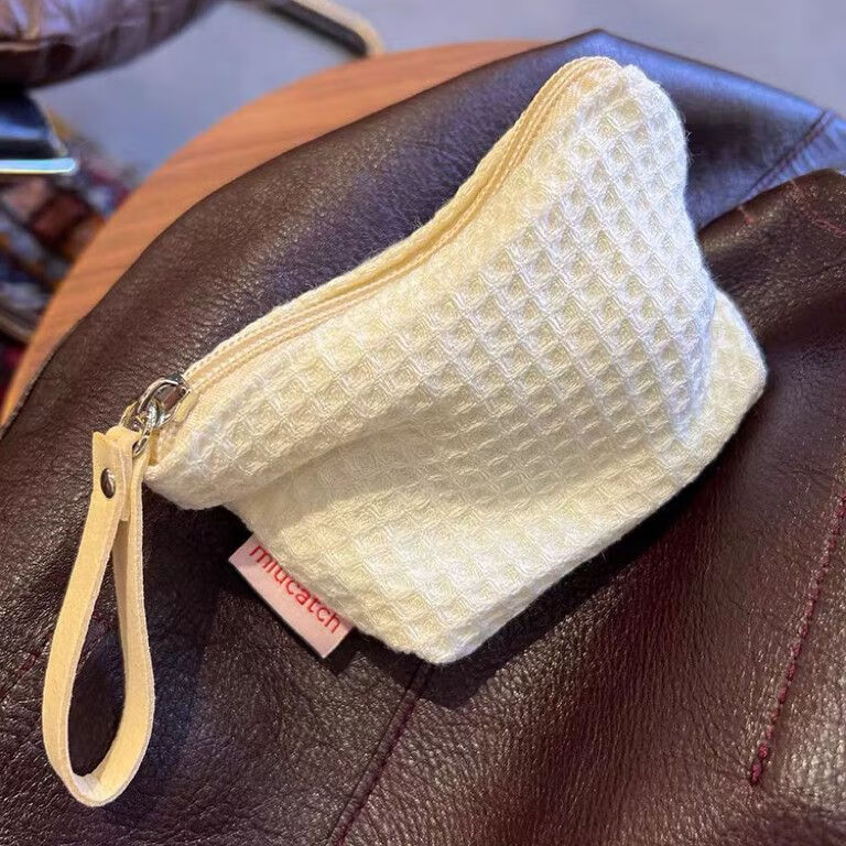 沁度耳机包化妆包华夫格钥匙口红化妆包便携姨妈巾收纳包 白色华夫格 收纳包