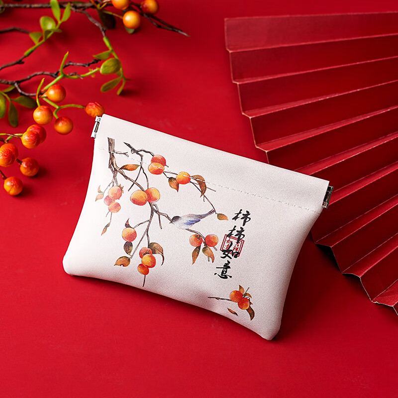 印花弹片收纳包 弹片印花收纳包口红包钥匙化妆袋包零钱包里面的 柿柿如意横款