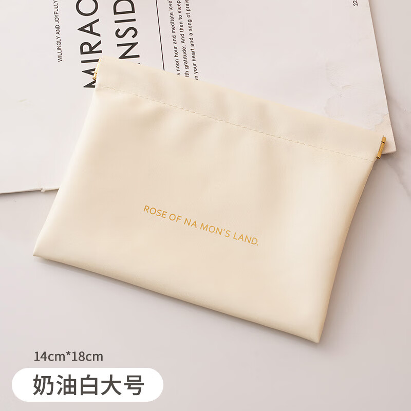 胖东来品质化妆包收纳袋收纳包包口红化妆品分类袋便携式弹片眼镜 奶油白-大号
