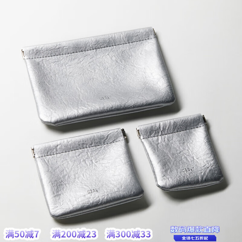 自动闭合收纳包大容量口红化妆包耳机数据线 【珠光银3件套】皮革弹簧片收纳包