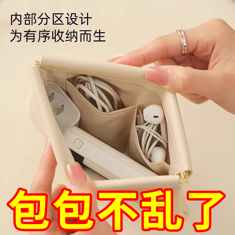 宰搂便携随身口红收纳包化妆包ins迷你气垫收纳旅行耳机数据线钥 少女白大号