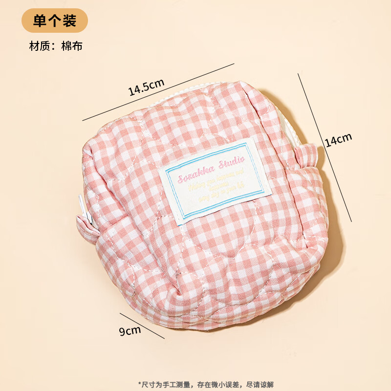 ins风格子化妆包可携式多功能收纳袋杂物零钱收纳包迷你口红耳机 森奈包-粉色